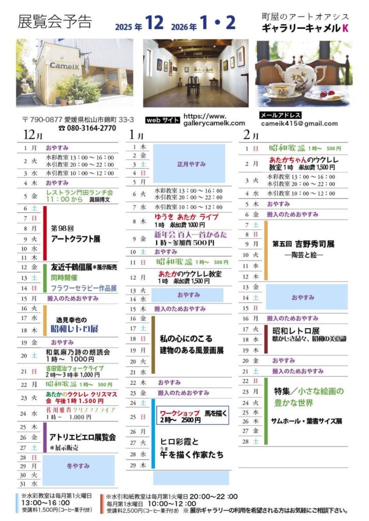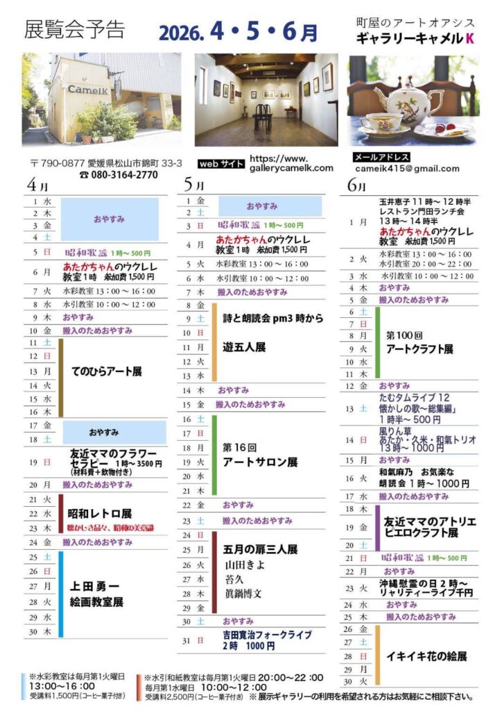 facebookページ https://www.facebook.com/gallerycamelk/?locale=ja_JP